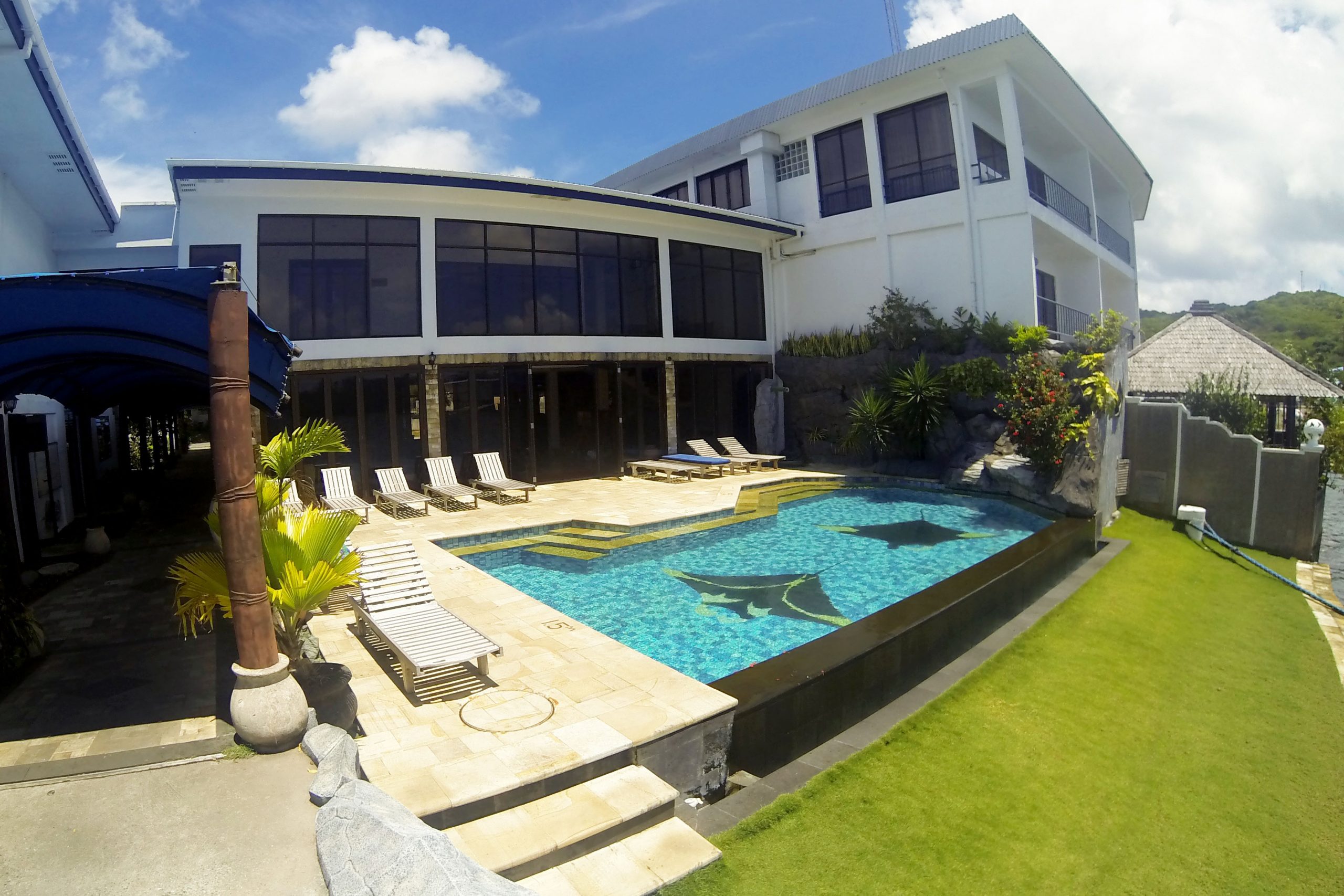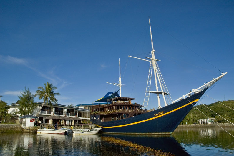 Das Resort verfügt über 35 Zimmer in einem dreistöckigen Gebäude. Diese teilen sich auf 11 Standard-Zimmer, 18 Oceanview-Zimmer und 6 Deluxe-Oceanview-Zimmer auf. Zwischen den Zimmertrakten befinden sich der Eingangsbereich mit Rezeption, Souvenirshop, Spa und Swimmingpool mit Holzliegen. Über einen kurzen Steg ist das Restaurantschiff "Mnuw", ein traditioneller indonesischer Phinisi-Schoner aus dem 18. Jahrhundert, mit dem Resort verbunden. Neben dem Frühstücksraum auf dem Hauptdeck gibt es ein geschlossenes Restaurant auf dem Oberdeck und die "Crows Nest"-Bar auf dem überdachten Sonnendeck. Das Mittag- und Abendessen wird à-la-carte gewählt und kann im Oberdeck-Restaurant oder in der luftigen Sonnendeckbar eingenommen werden.