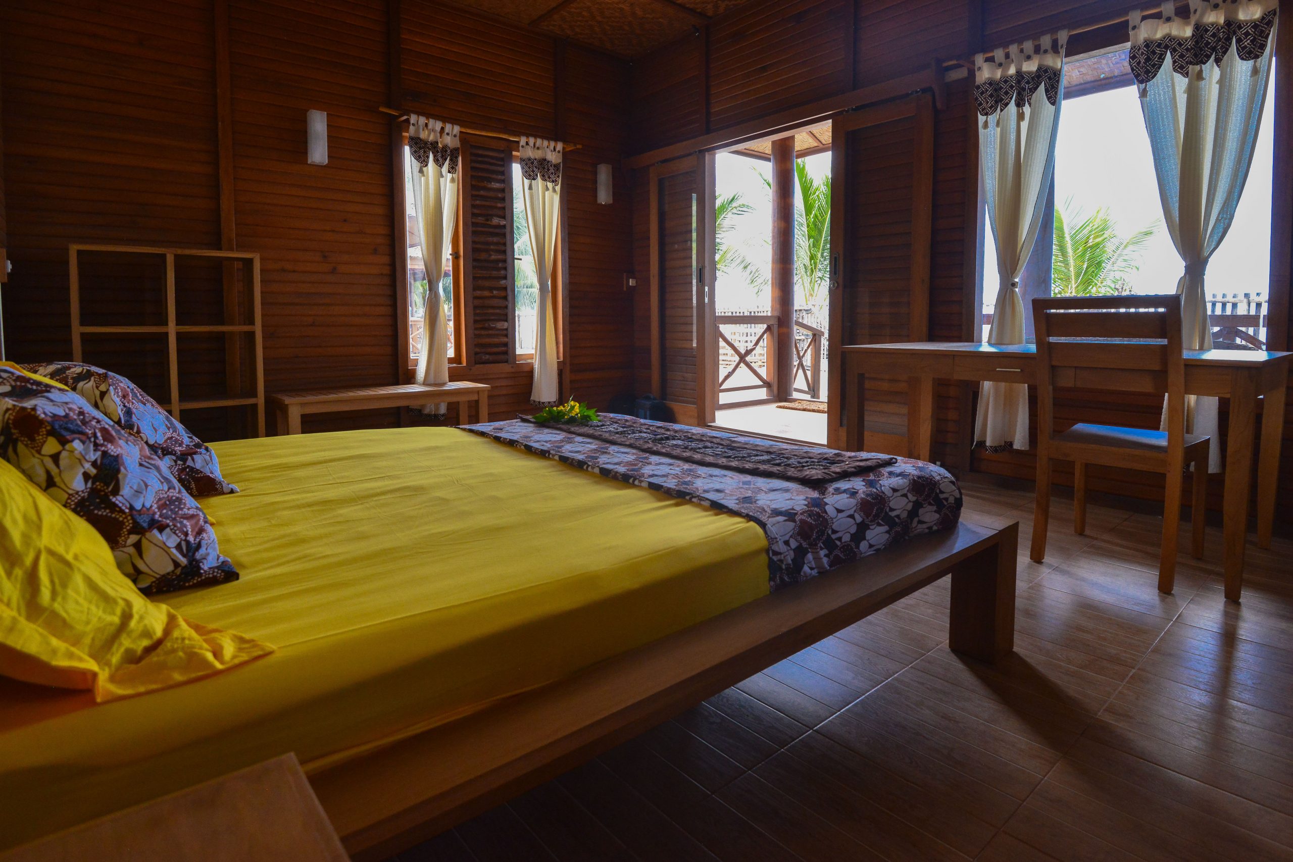 Das Resort verfügt über insgesamt fünf klimatisierte Standard- und Deluxe- Bungalows. Das halboffene Restaurant bietet einen schönen Ausblick auf den dunklen Sandstrand. Die Tauchbasis befindet sich direkt daneben. WLAN ist im Resort vorhanden.