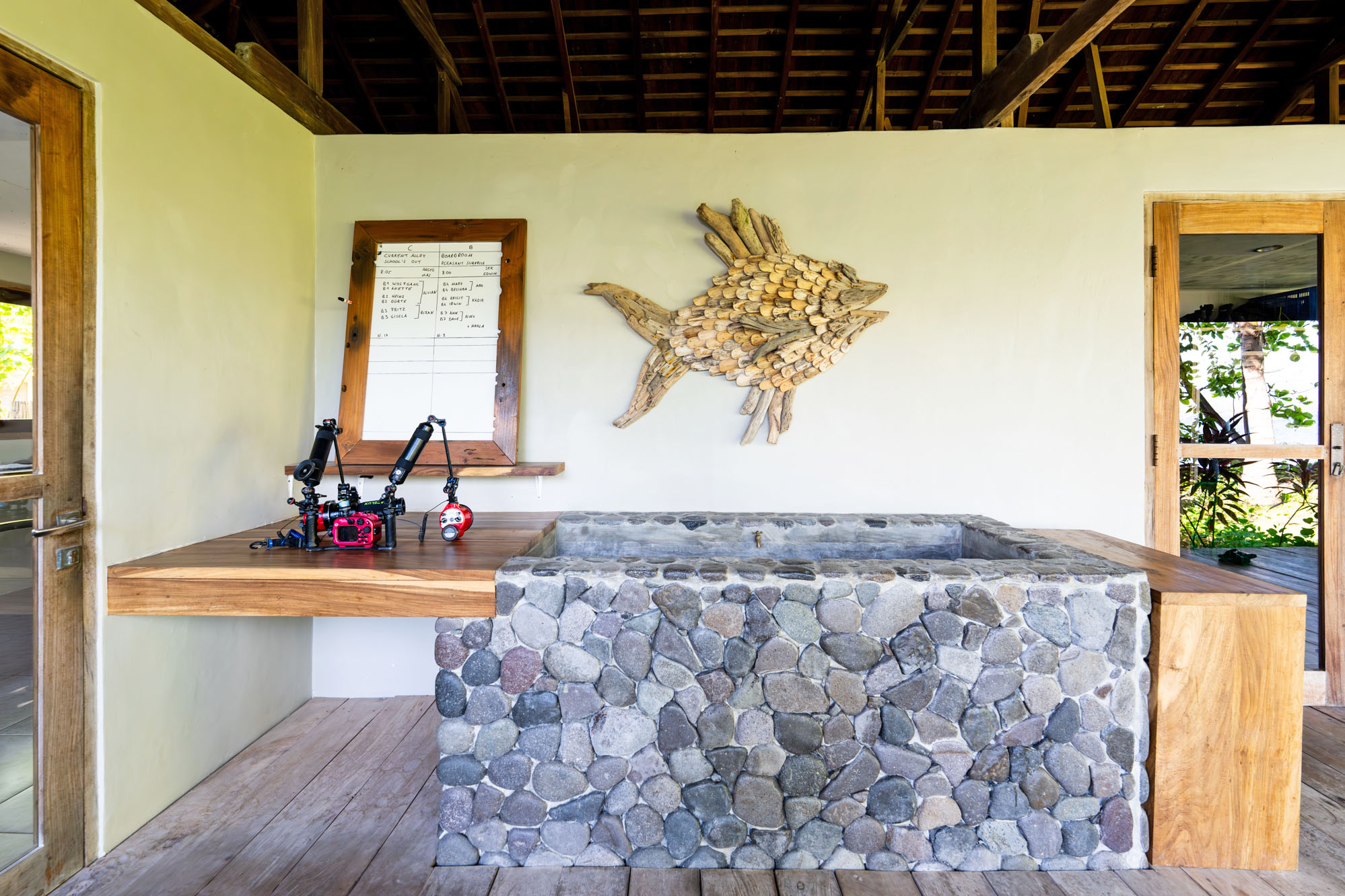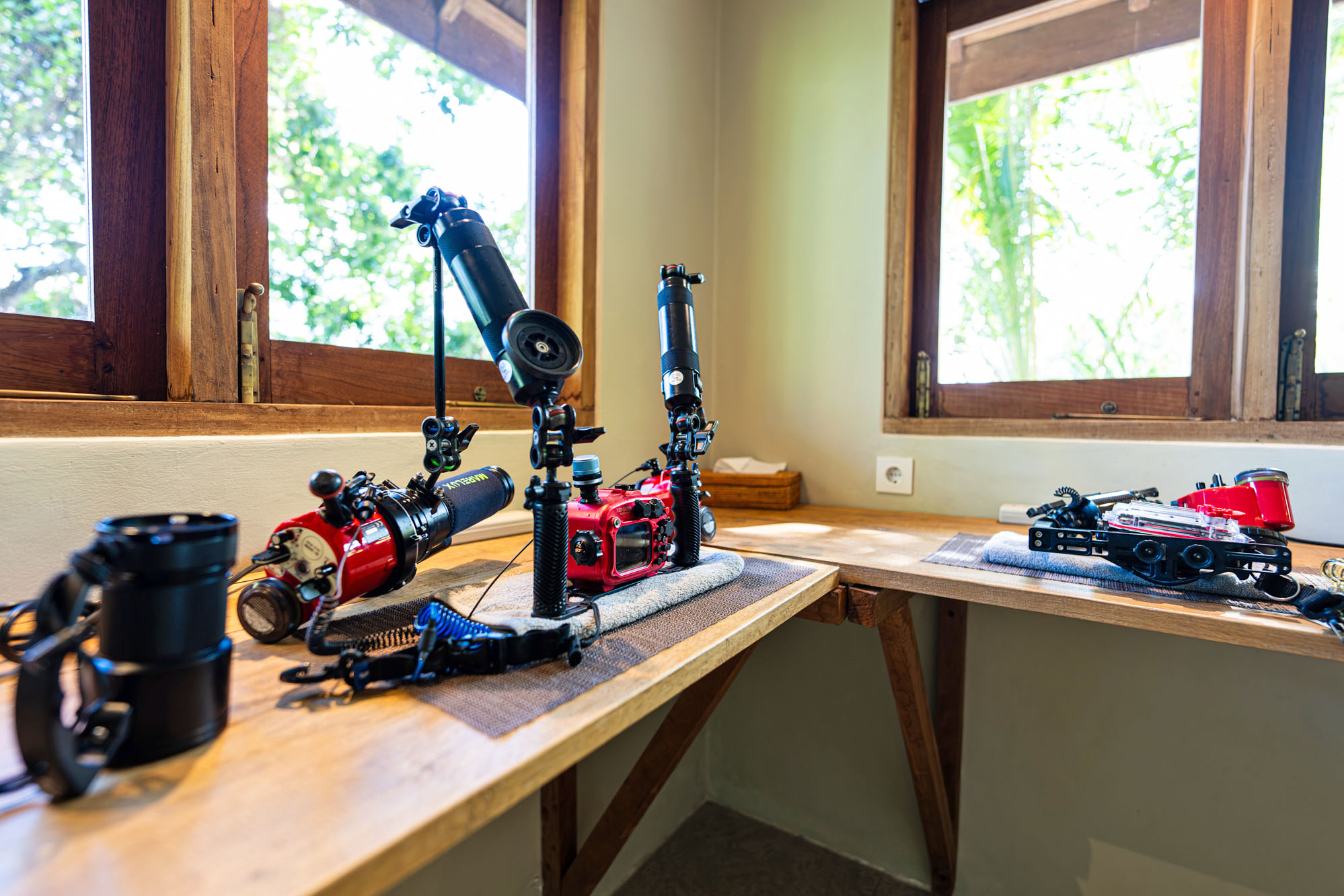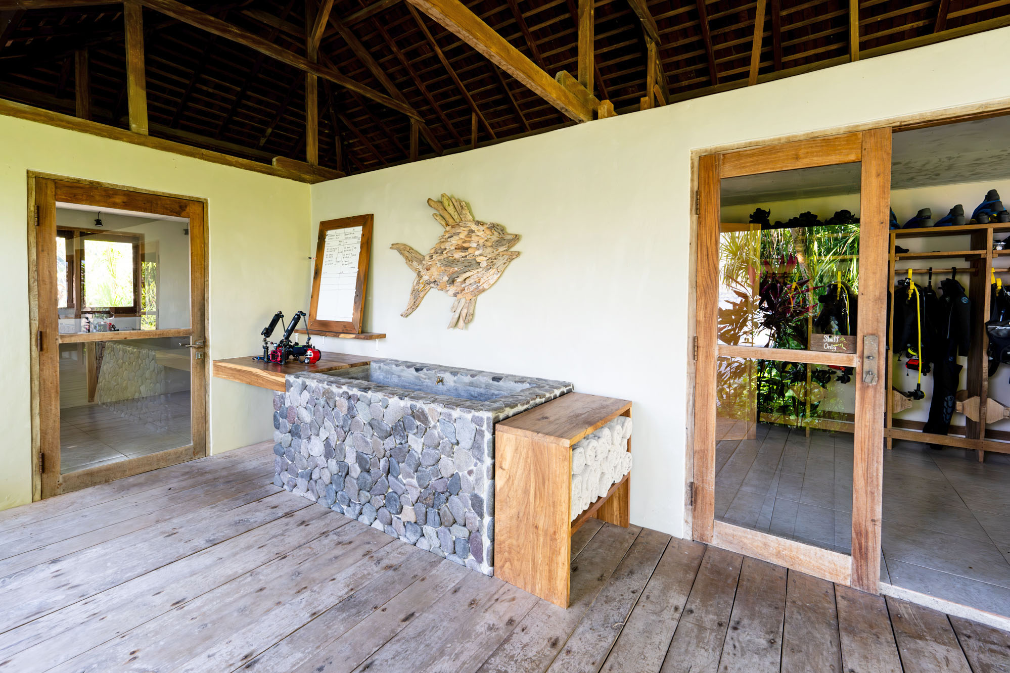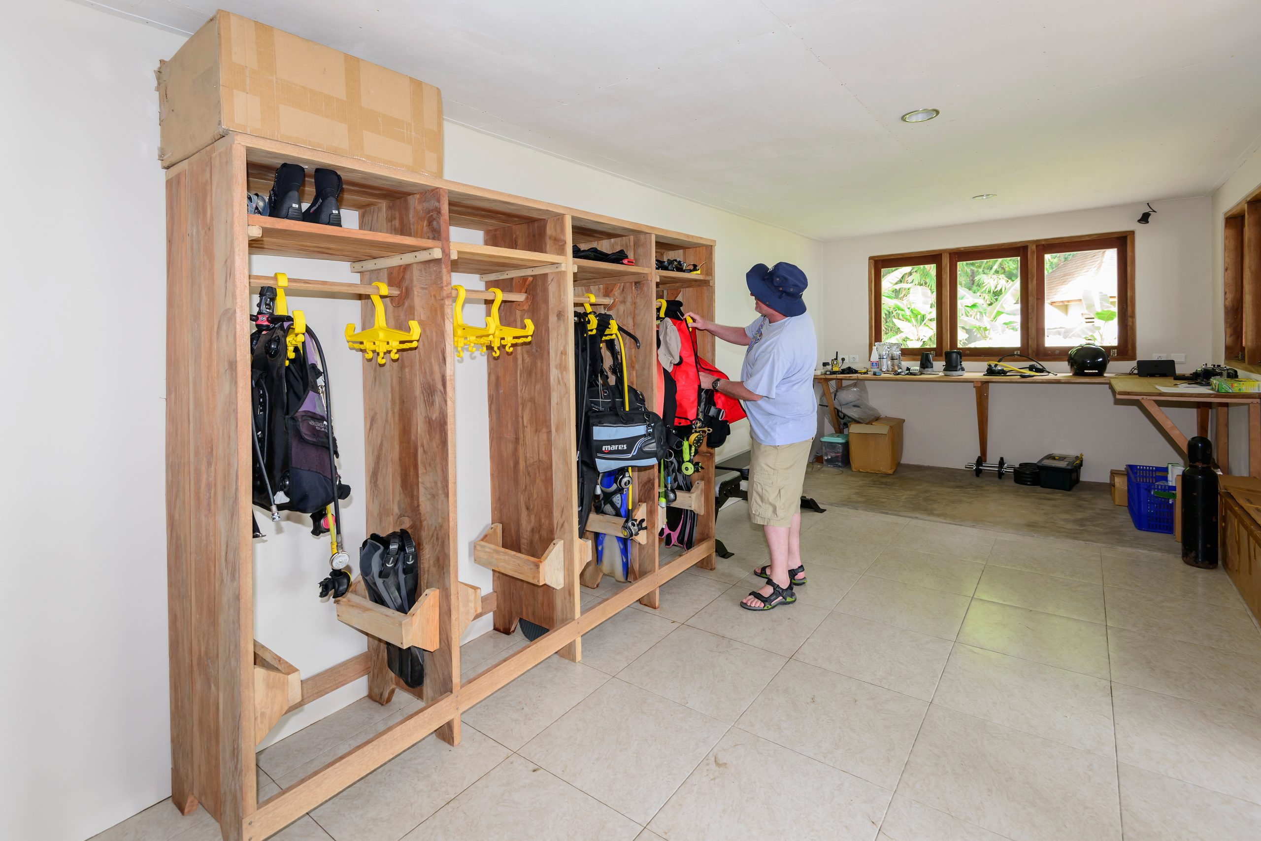 Es stehen 12-Liter-Aluminiumflaschen mit DIN-Anschluss sowie 15-Liter-Aluminiumflaschen (DIN, gegen geringen Aufpreis) zur Verfügung. Nitrox-zertifizierte Taucher können kostenlos mit Nitrox tauchen. Leihausrüstung ist in begrenztem Umfang vorhanden. Zwei gut motorisierte Fiberglassboote bringen die Taucher schnell zu den umliegenden Tauchplätzen. Die Boote sind mit Notfall-Sauerstoff, Erste-Hilfe-Kasten, einer kleinen Ersatzteilbox mit Mundstück, Flossenband & Co, Kaffee, Tee, Trinkwasser und hausgemachtem Kuchen oder Keksen für die Oberflächenpause ausgestattet. Beide Boote bieten schattige Sitzmöglichkeiten für die Taucher sowie genügend Stauraum für größere Unterwasserkamerasysteme