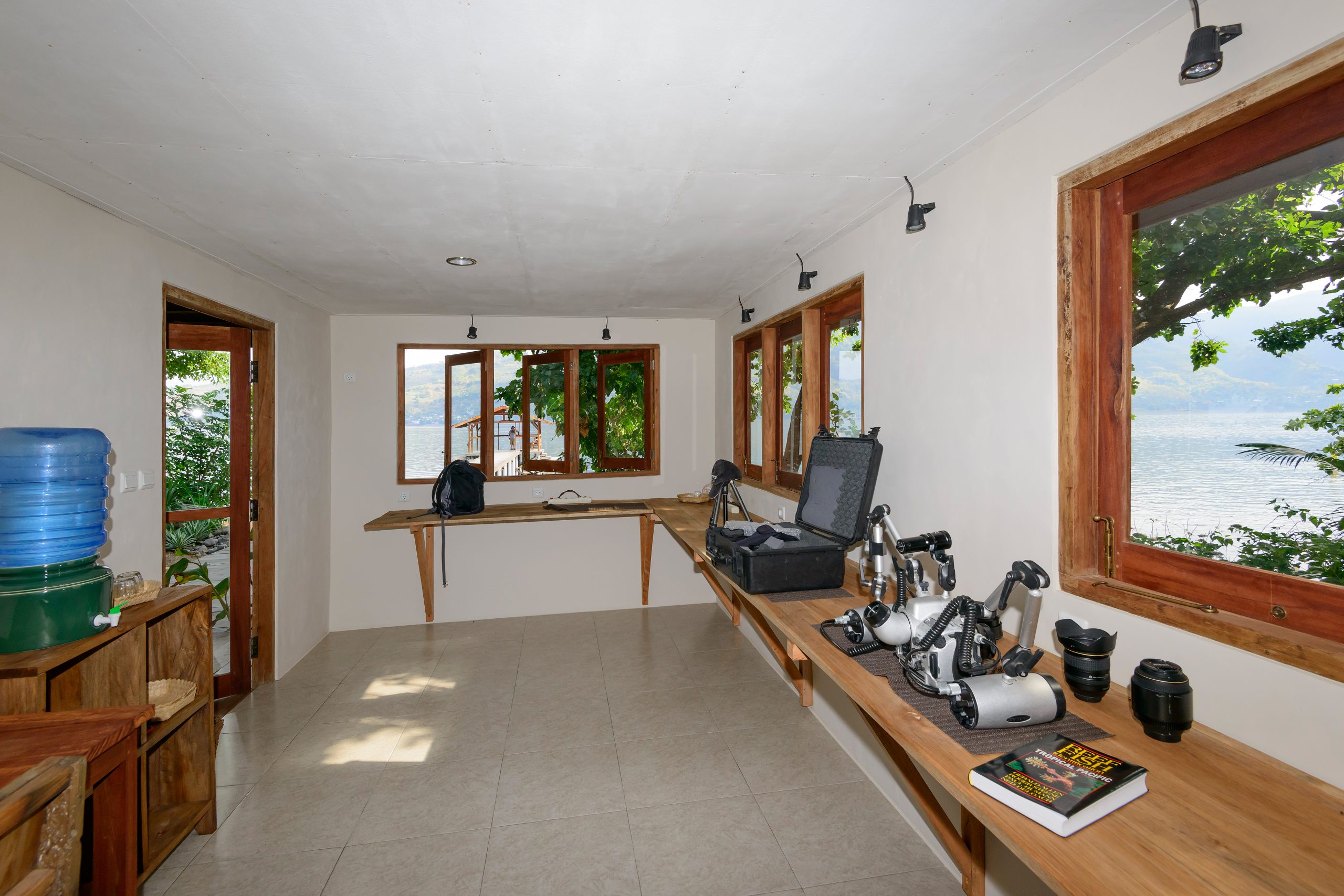 Auch das Hausriff ist für Makrofans ein Paradies. Nach einem Sprung vom Bootssteg findet man sich schon ab fünf Metern in der intakten Unterwasserwelt wieder. Mandarinfische, Kardinalfische, jagende Trompetenfische, Langusten, Steinfische oder scheue Marmorgarnelen tummeln sich inmitten von Vulkangestein, Seeigeln und Weichkorallen.
