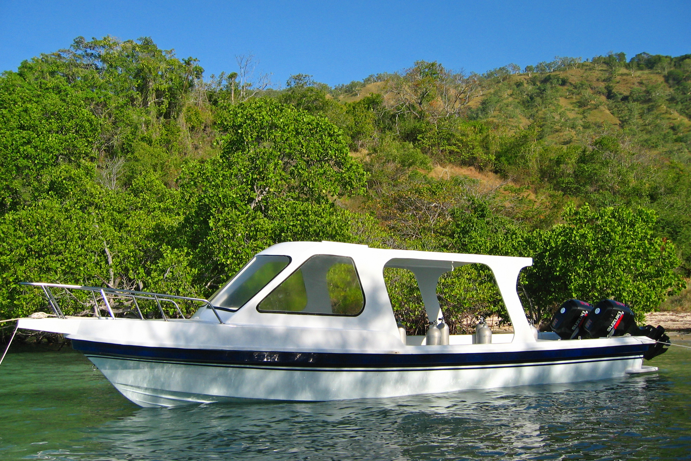 Täglich werden zwei, auf Nachfrage drei Bootstauchgänge zu den umliegenden Tauchplätzen, die in 5-30 Minuten erreicht werden, angeboten. Weil das Tauchgebiet noch nicht komplett erschlossenen ist, sind auf Wunsch auch Exploration-Dives möglich. Die Tauchboote bieten Platz für 8 Taucher und 2 Guides, so dass in kleinen Gruppen von maximal 4 Tauchern pro Guide getaucht wird.