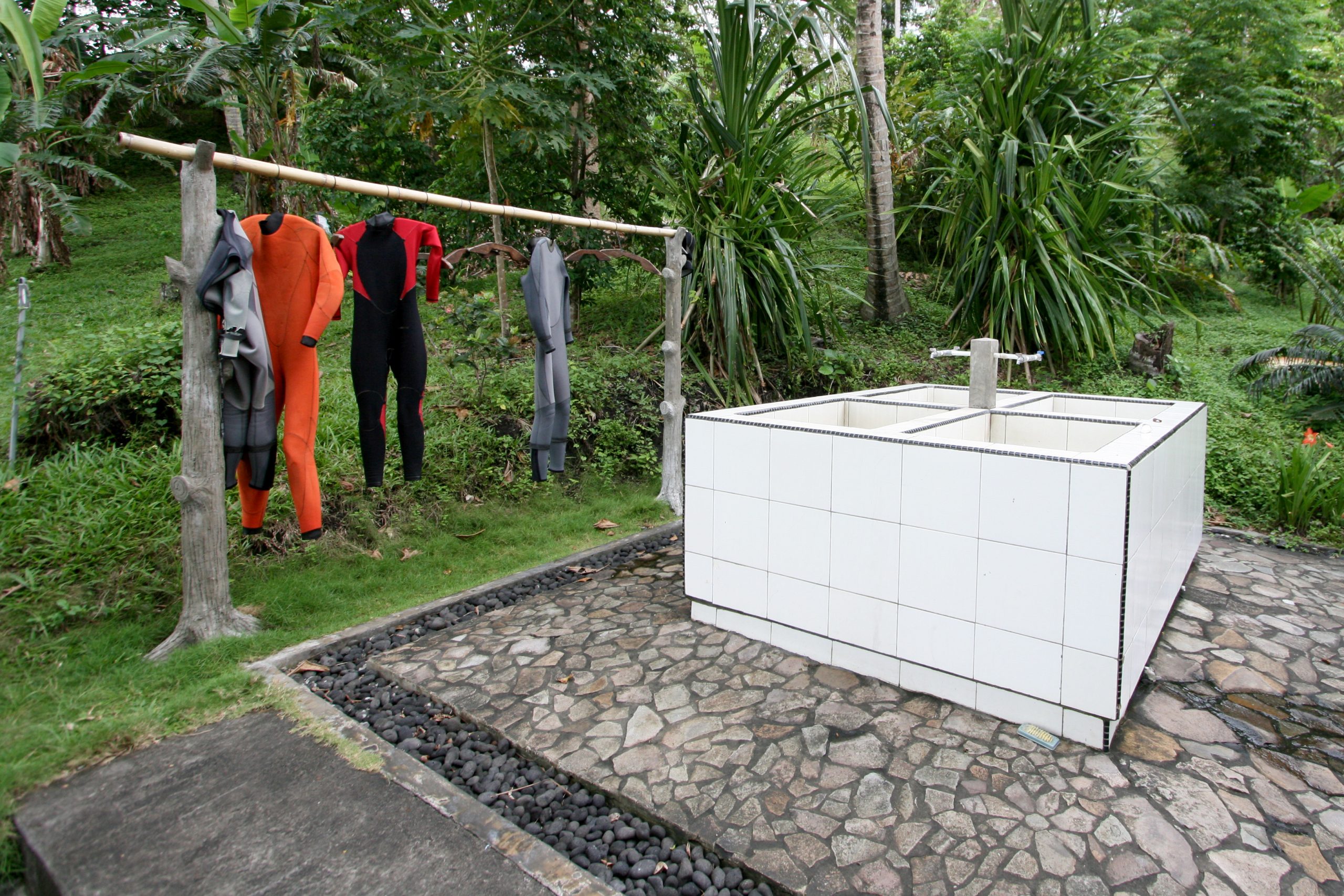 Täglich werden drei bis vier Ausfahrten zu den Tauchplätzen der Straße von Lembeh, die in einer bis zwanzig Minuten erreicht werden, angeboten. In der Regel kehren die Boote nach jedem Tauchgang wieder zurück. Getaucht wird in kleinen Gruppen, die von erfahrenen indonesischen Tauchguides begleitet werden. Sie wurden besonders geschult, um auf die speziellen Bedürfnisse der Unterwasserfotografen besser eingehen zu können. Am interessanten Hausriff können zahlreiche Critters gefunden werden.