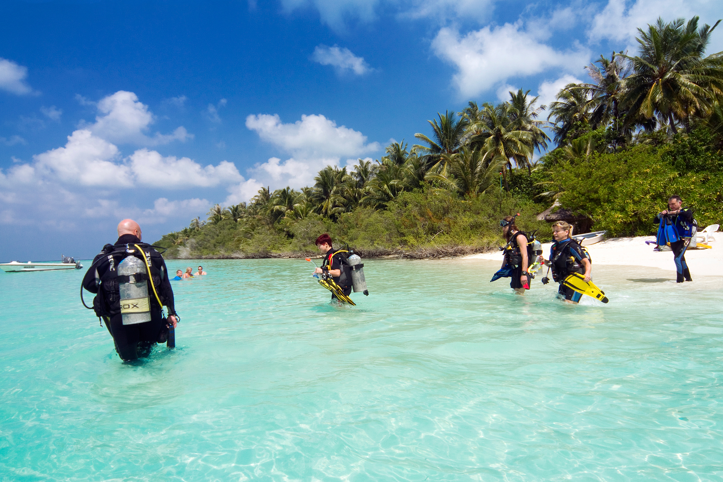 Viele bekannte Tauchplätze, wie zum Beispiel "Embudu Express" sind in wenigen Bootsminuten erreichbar. Strömungsreiche Tauchgänge stehen hier auf der Tagesordnung.