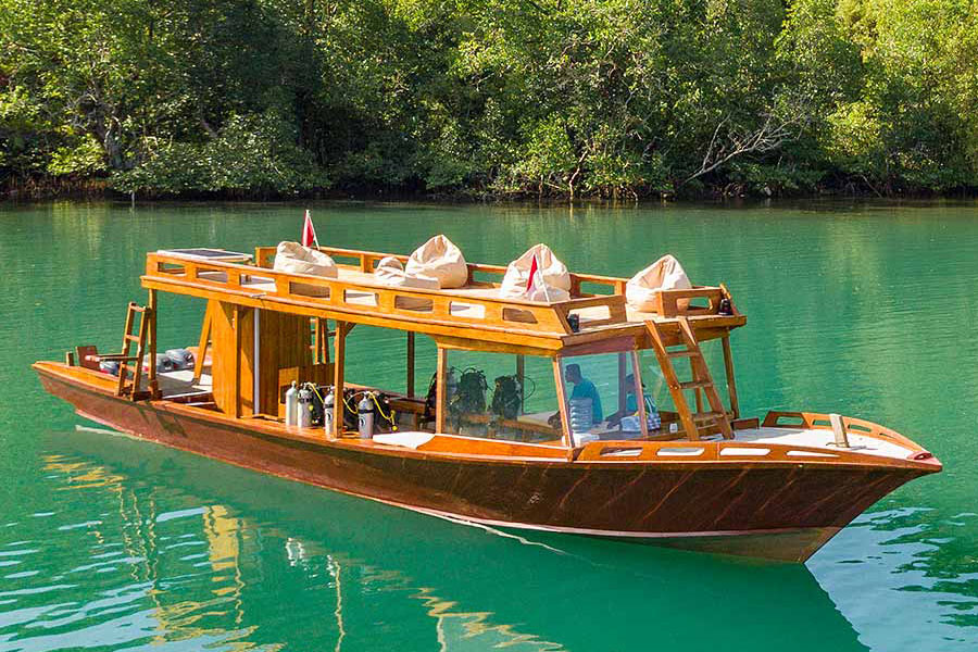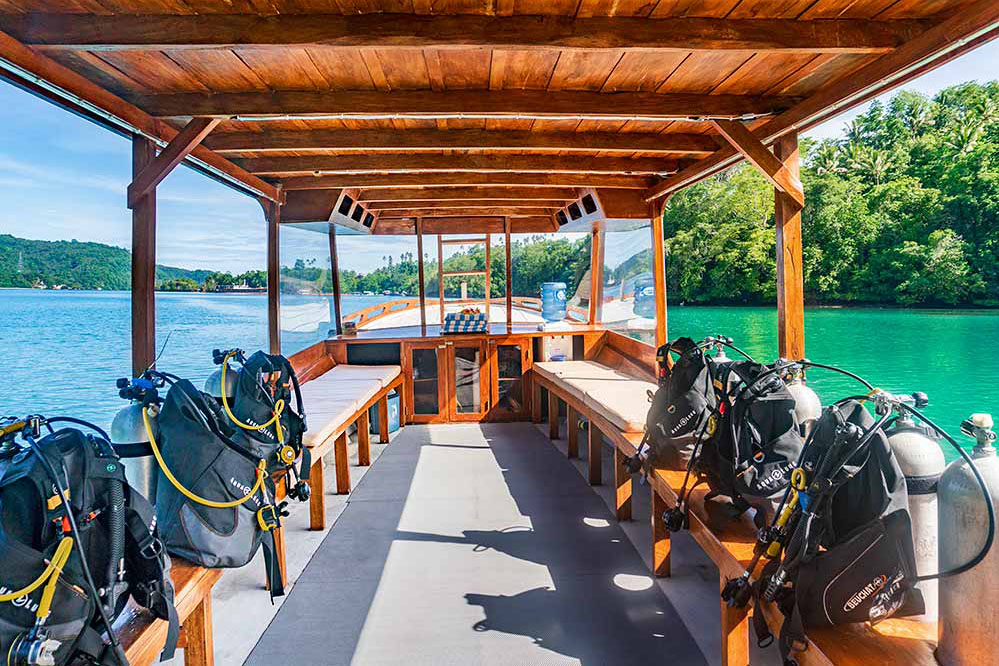 Täglich werden drei bis vier Ausfahrten zu den Tauchplätzen der Straße von Lembeh, die in 5 bis 20 Minuten erreicht werden, angeboten. In der Regel findet morgens eine Ausfahrt mit zwei Tauchgängen statt, zwischen denen nicht wieder zurück zur Tauchbasis gefahren wird. Nach dem Mittagessen erfolgt die Ausfahrt zum dritten Tauchgang. Am späten Nachtmittag bzw. Abend stehen dann Mandarinfisch- oder Nachttauchgang auf dem Plan. Getaucht wird in kleinen Gruppen, die von erfahrenen indonesischen Tauchguides begleitet werden. Am interessanten Hausriff können zahlreiche Critter gefunden werden.