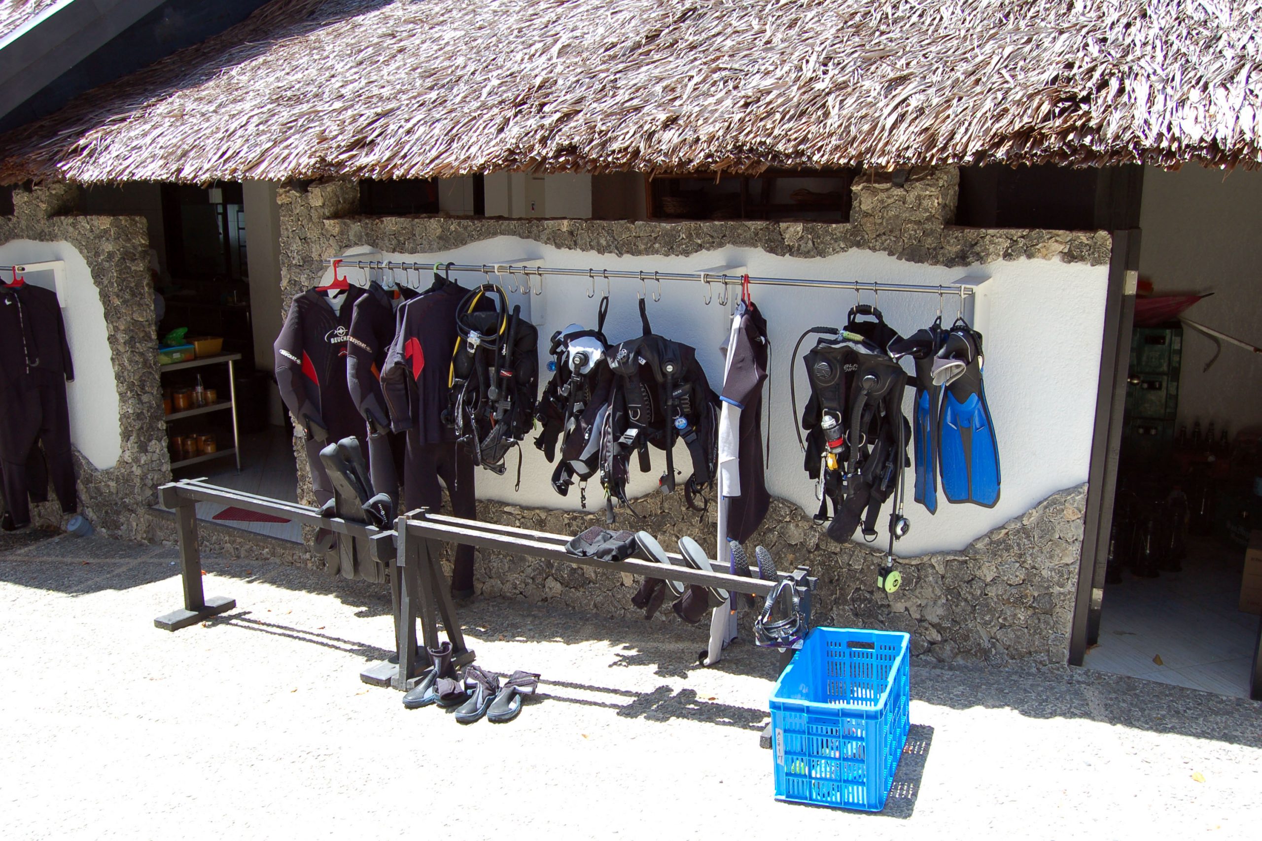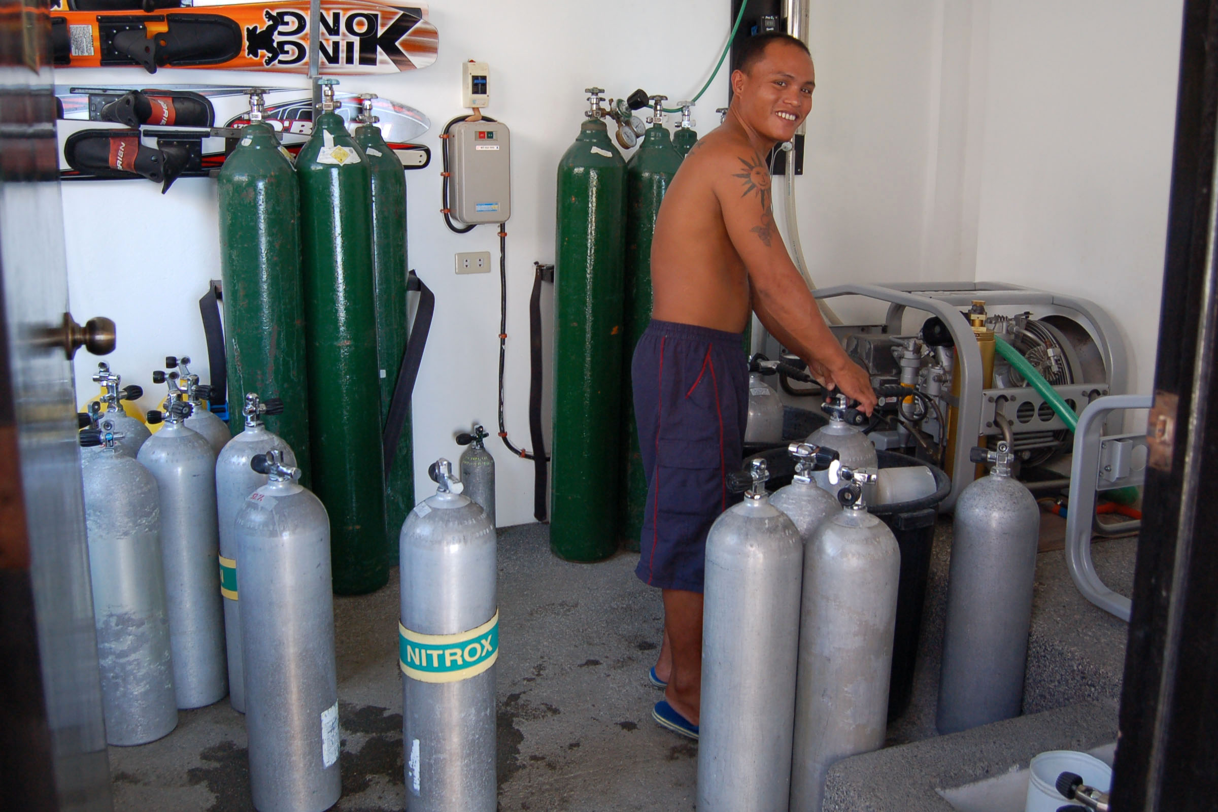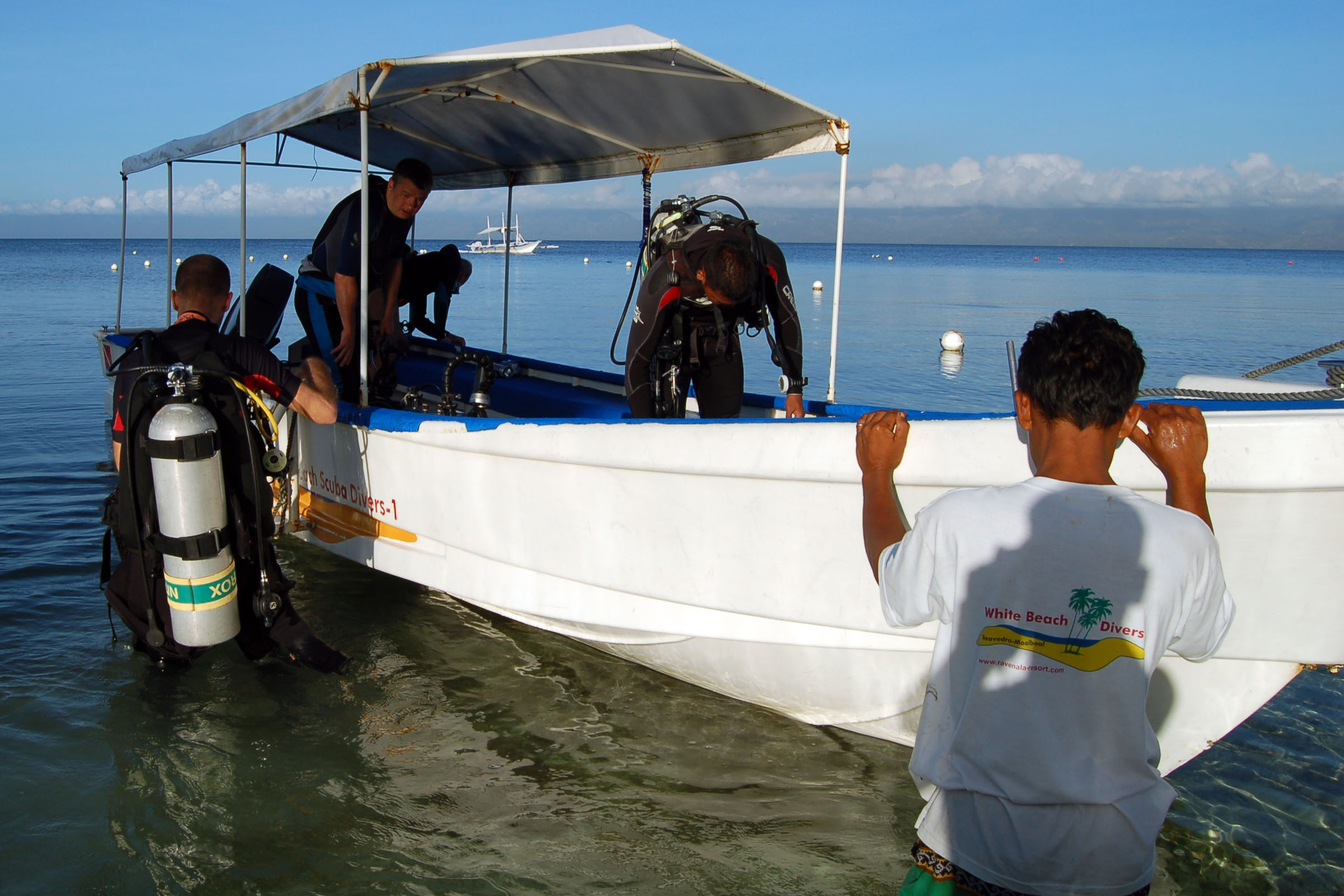 Täglich werden drei bis vier Tauchgänge zu den umliegenden Tauchplätzen angeboten, die in 15 bis 20 Minuten erreicht werden. Es stehen eine traditionelle Banka und drei Speedboote als Tauchboote zur Verfügung. Die Tauchgänge werden von philippinischen Guides, die ihre Tauchplätze sehr gut kennen, begleitet. Nach Absprache mit dem Basenleiter sind auch Hausrifftauchgänge im Buddyteam ohne Guide möglich. Hausrifftauchgänge können tagsüber jederzeit durchgeführt werden.